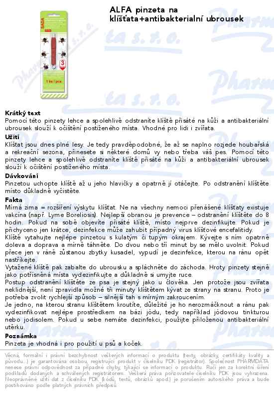 ALFA pinzeta na klíšťata+antibakterialní ubrousek