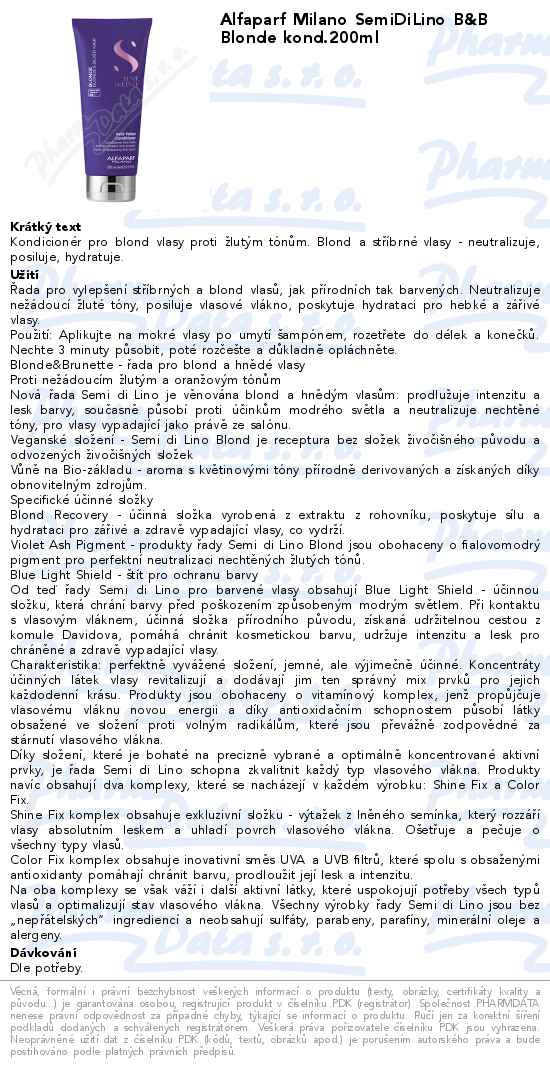 Alfaparf Milano SemiDiLino B&B Blonde kond.200ml