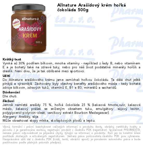 Allnature Arašídový krém hořká čokoláda 500g