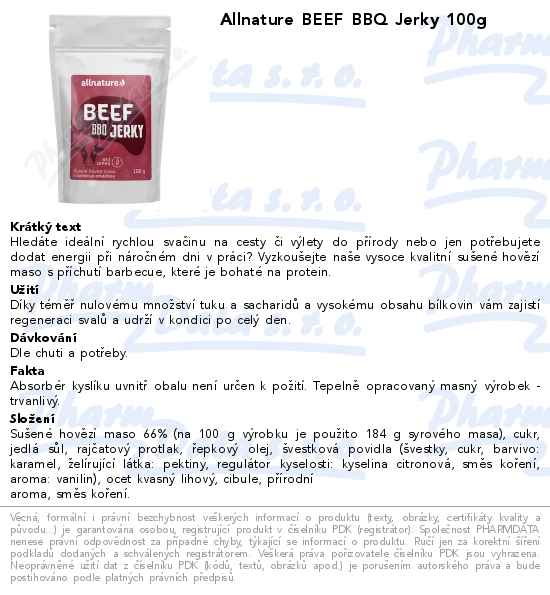 Allnature BEEF BBQ Jerky 100g