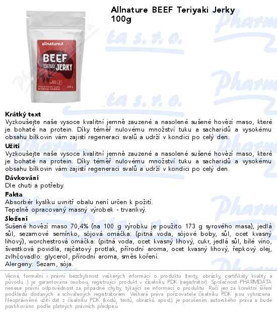 Allnature BEEF Teriyaki Jerky 100g