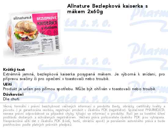 Allnature Bezlepková kaiserka s mákem 2x60g