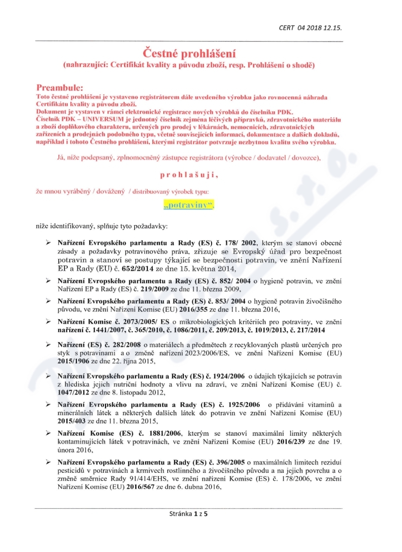 5 strany čestného prohlášení: strana 1, strana 2, strana 3, strana 4, strana 5,