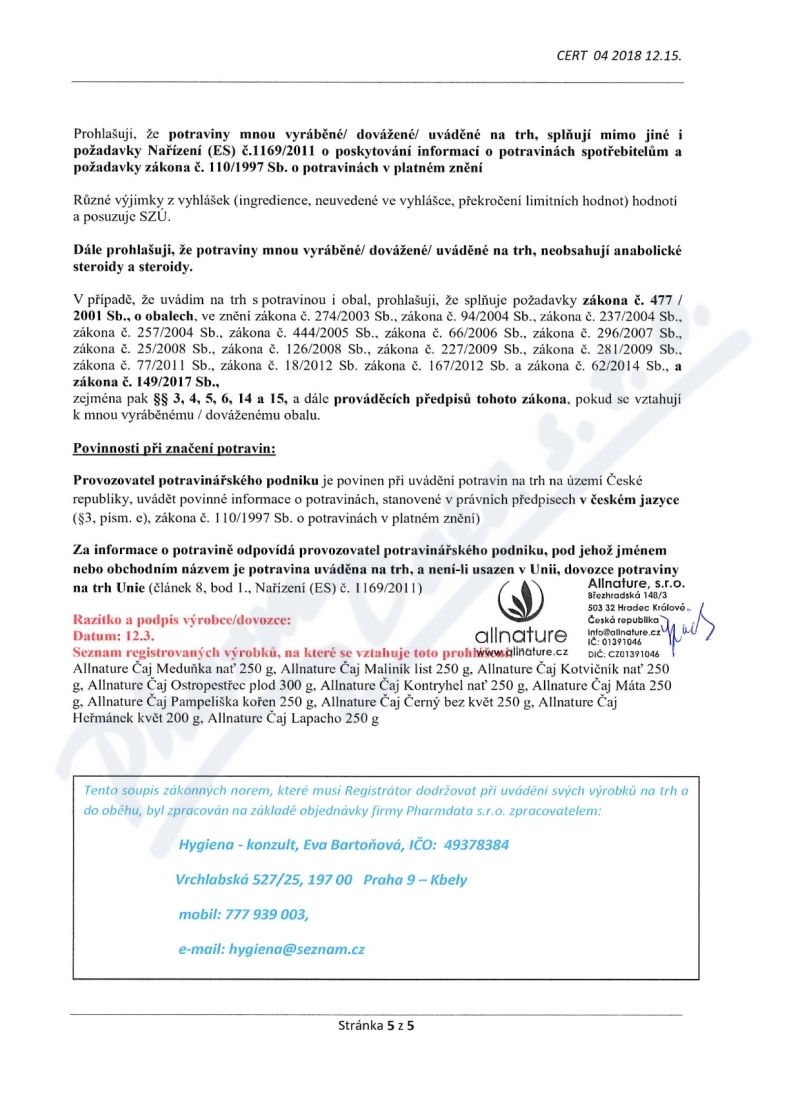 Výrobce: Allnature s.r.o.