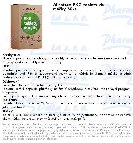 Allnature EKO tablety do myčky 60ks