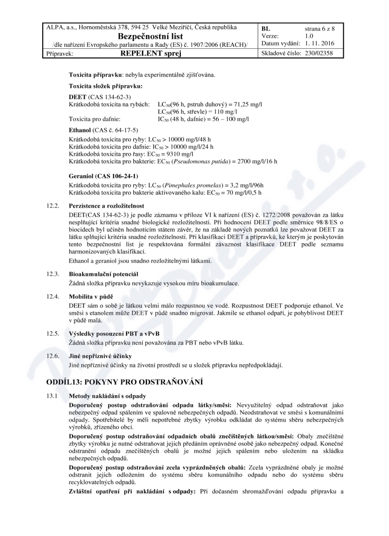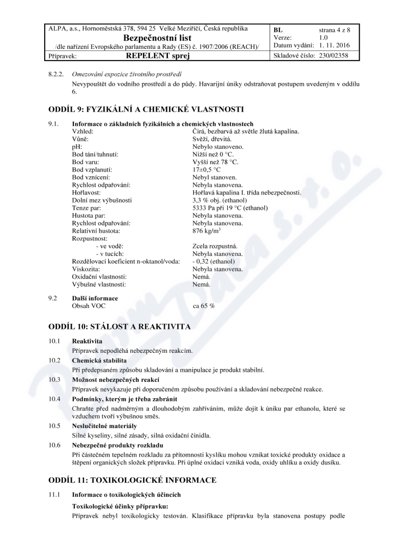 8 strany bezpečnostních listů: strana 1, strana 2, strana 3, strana 4, strana 5, strana 6, strana 7, strana 8,