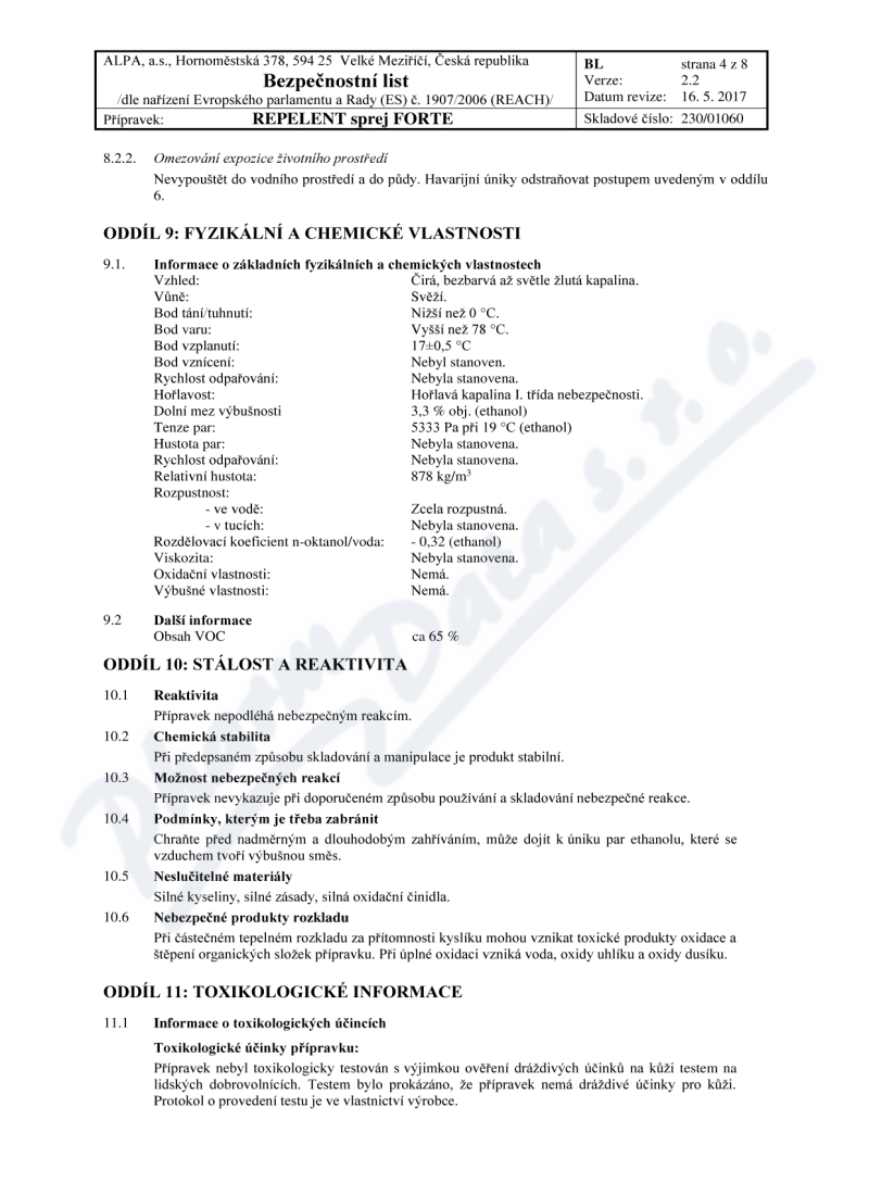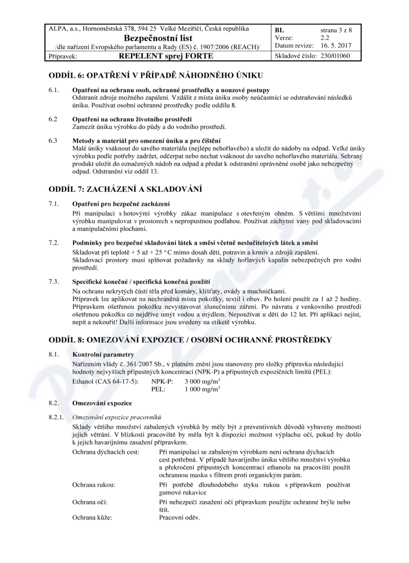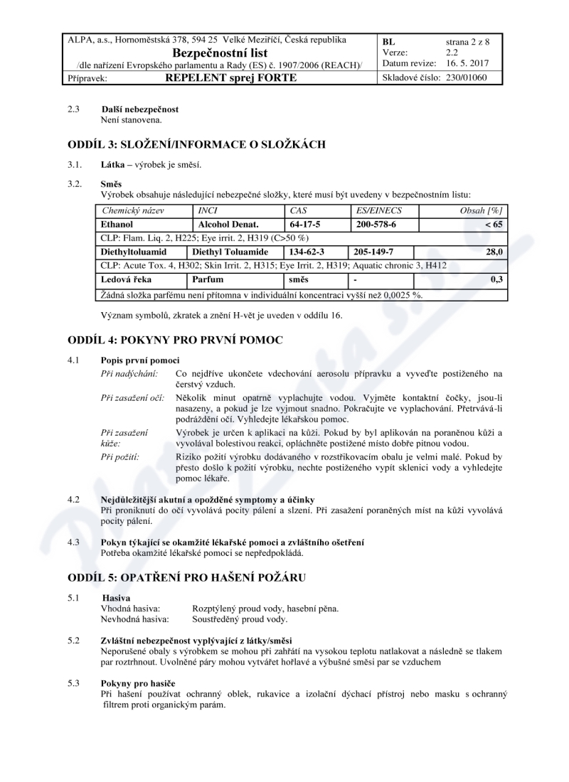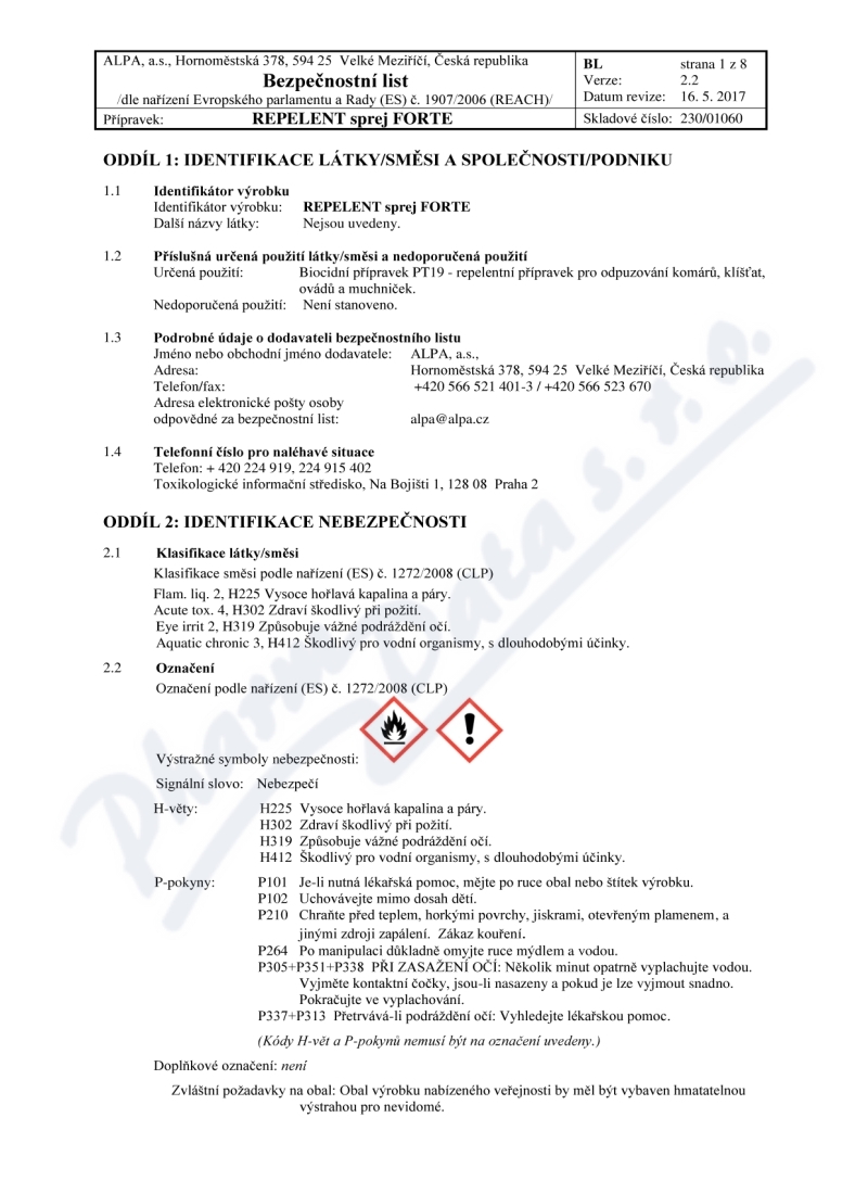 8 strany bezpečnostních listů: strana 1, strana 2, strana 3, strana 4, strana 5, strana 6, strana 7, strana 8,