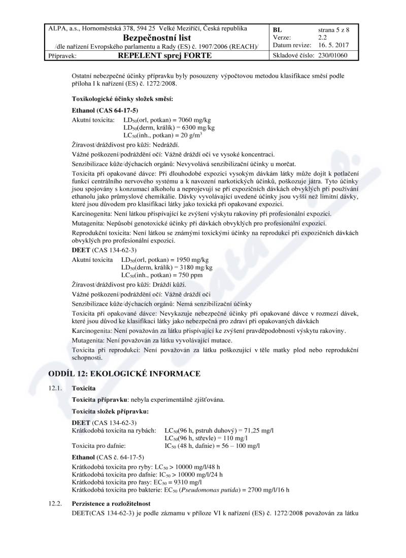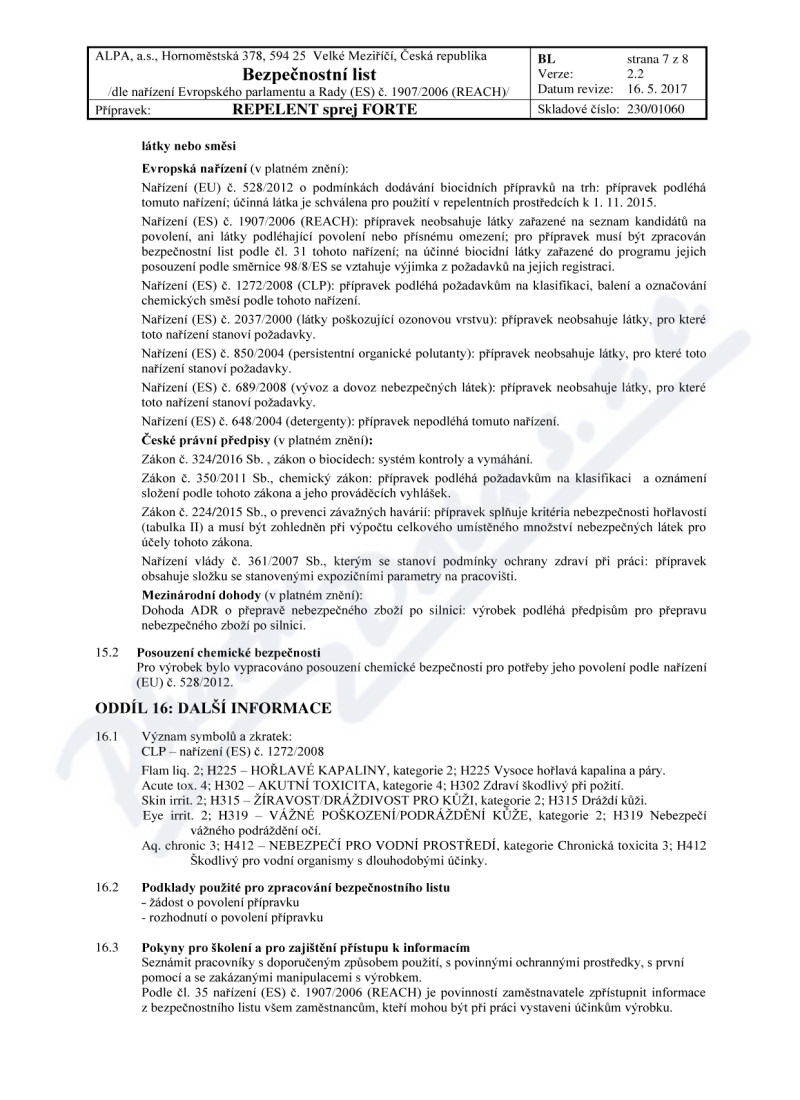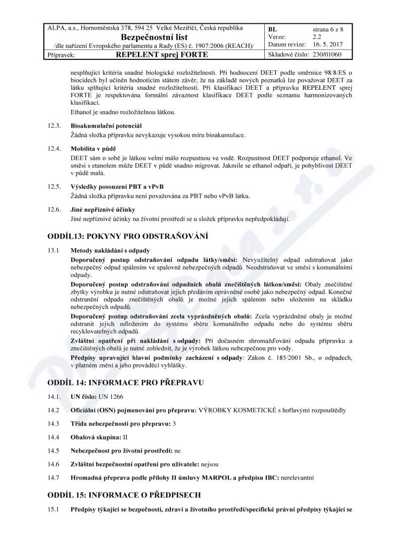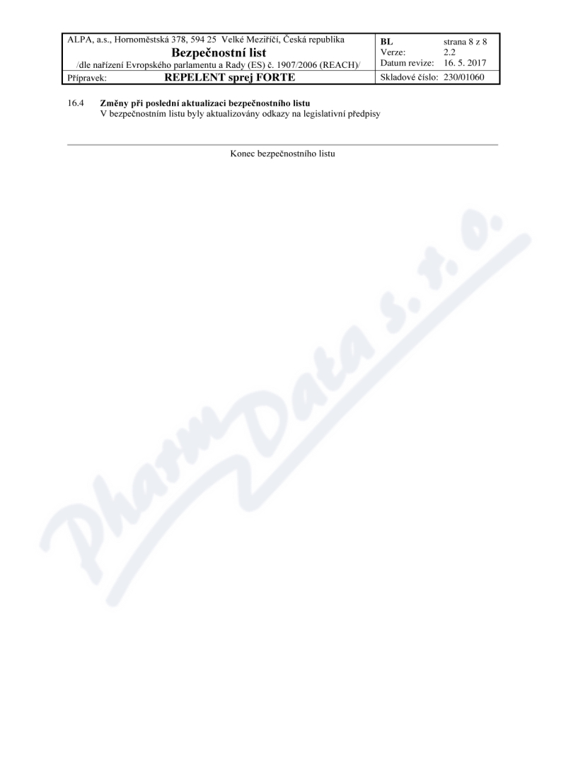 8 strany bezpečnostních listů: strana 1, strana 2, strana 3, strana 4, strana 5, strana 6, strana 7, strana 8,