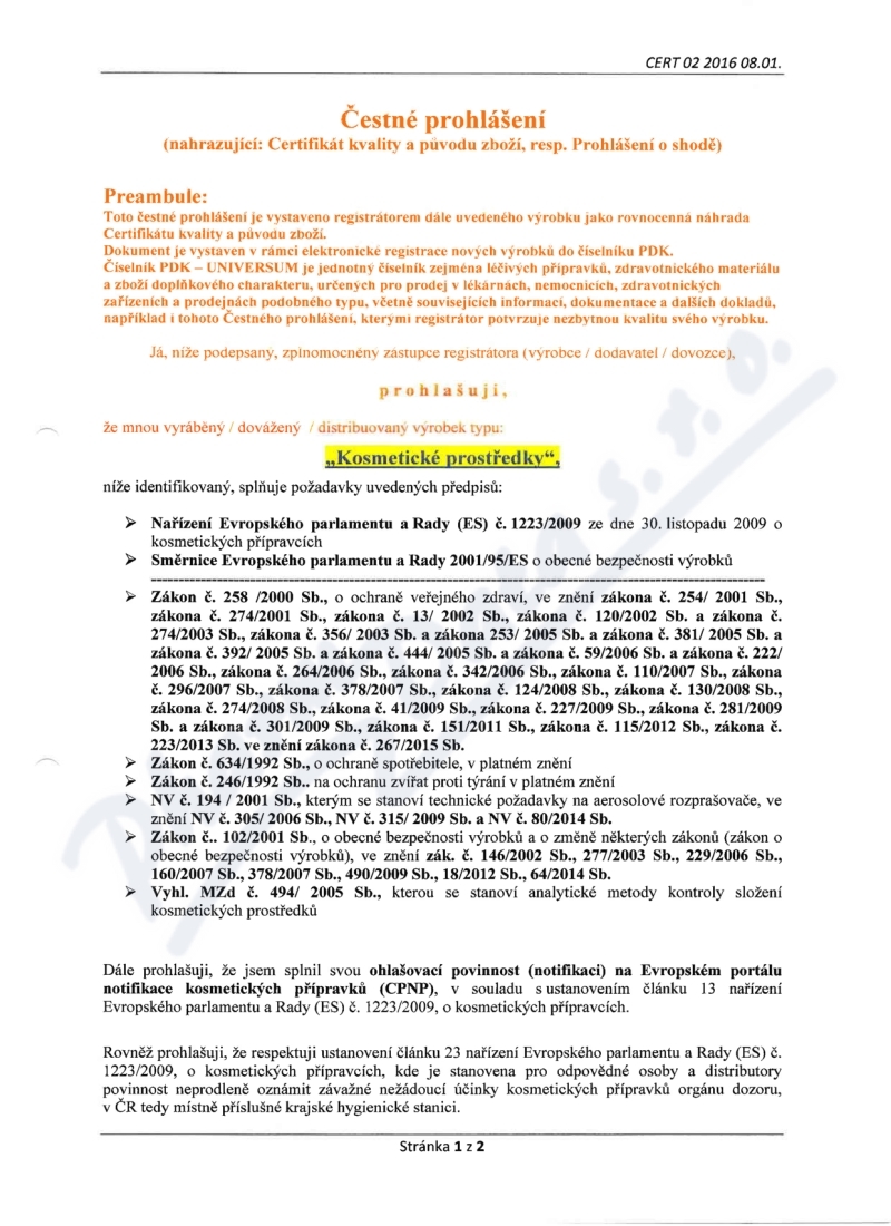 2 strany čestného prohlášení: strana 1, strana 2,