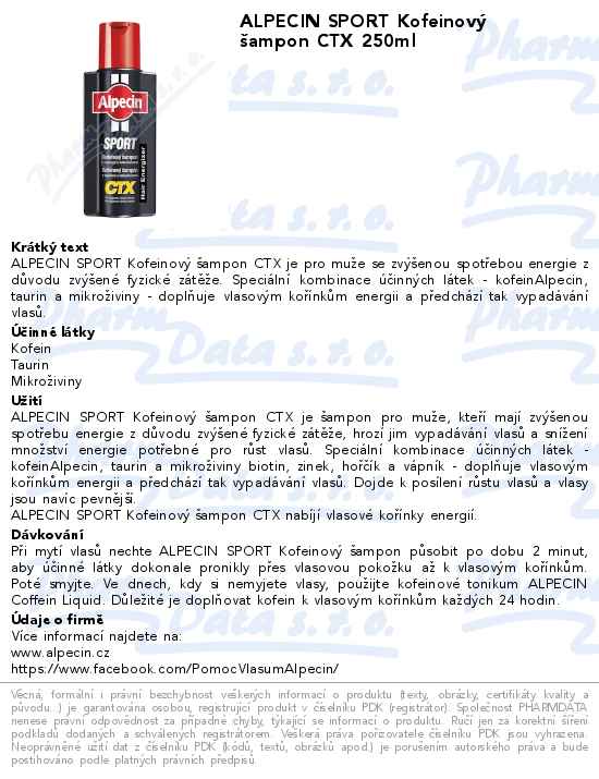 ALPECIN SPORT Kofeinový šampon CTX 250ml