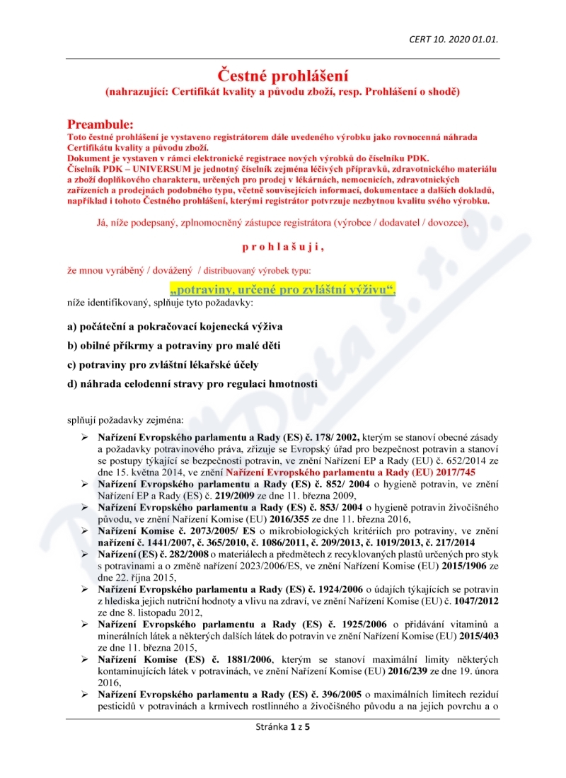 Obsahuje: POTRAVINY PRO ZVLÁŠTNÍ LÉKAŘSKÉ ÚČELY (PZLÚ) (ČESKÁ ATC SKUP