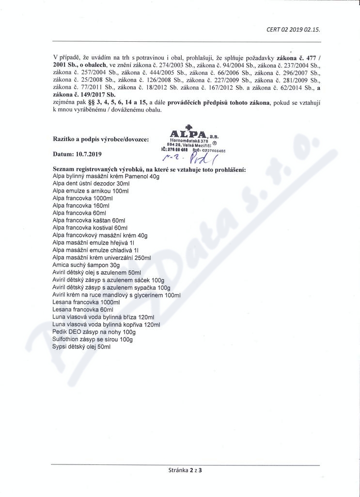 Výrobce: ALPA A.S.