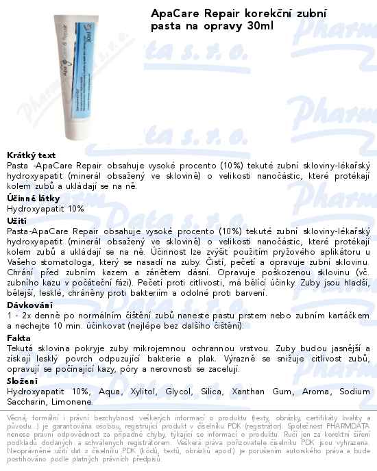 ApaCare Repair korekční zubní pasta na opravy 30ml