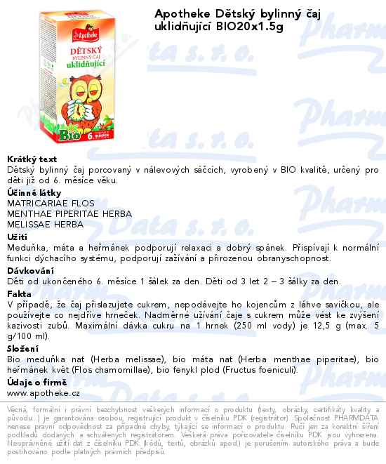 Apotheke Dětský bylinný čaj uklidňující BIO20x1.5g