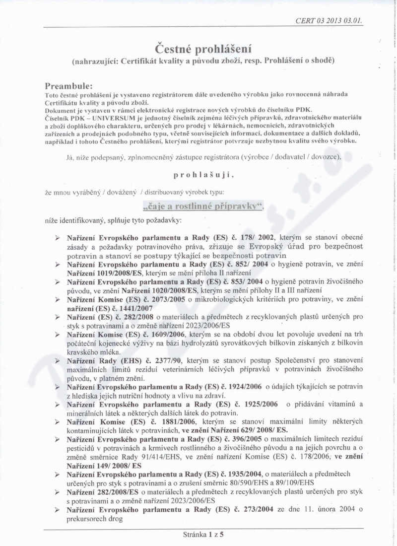 5 strany čestného prohlášení: strana 1, strana 2, strana 3, strana 4, strana 5,