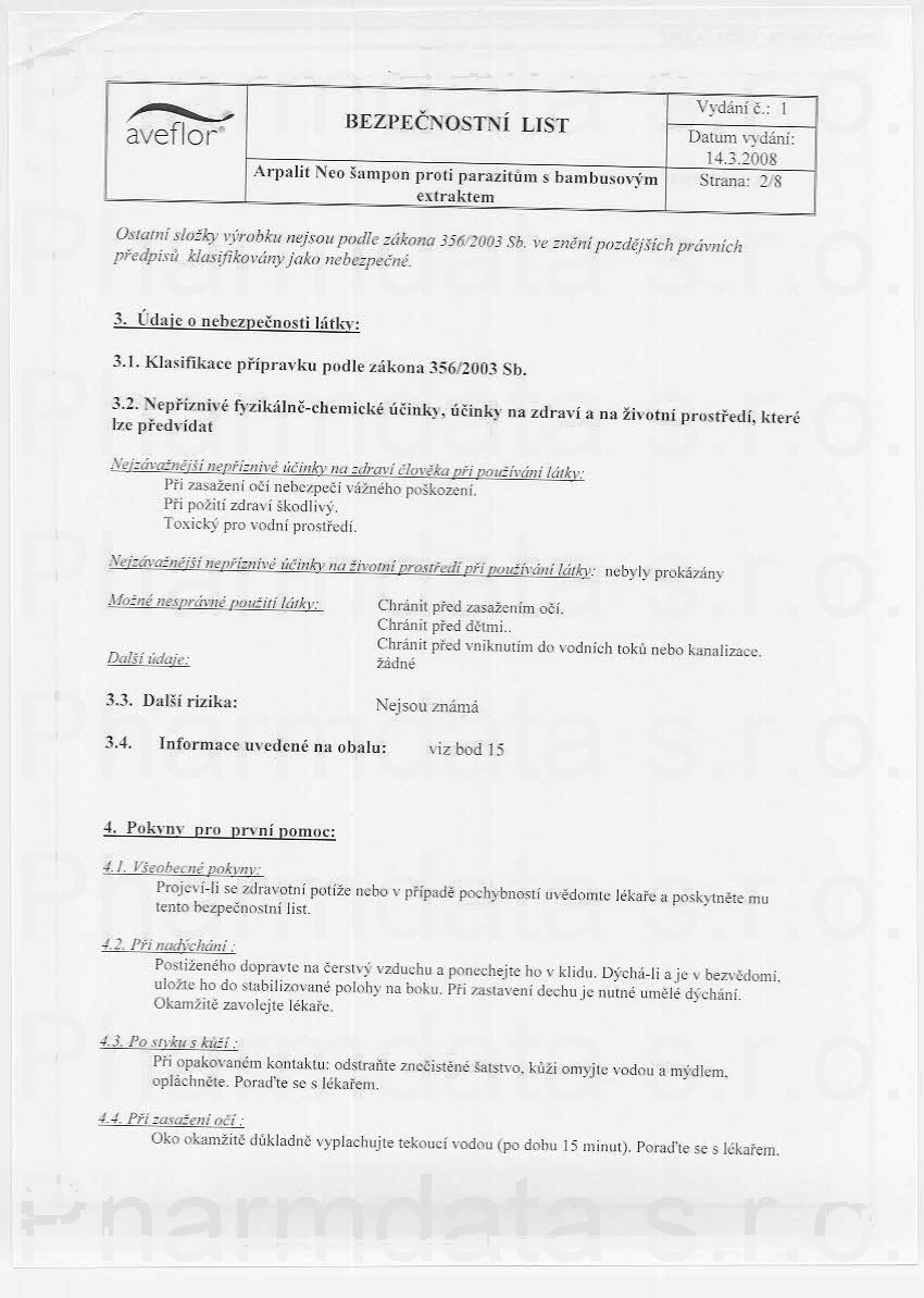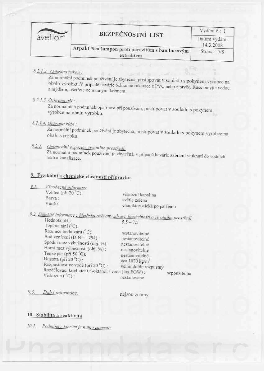 8 strany bezpečnostních listů: strana 1, strana 2, strana 3, strana 4, strana 5, strana 6, strana 7, strana 8,