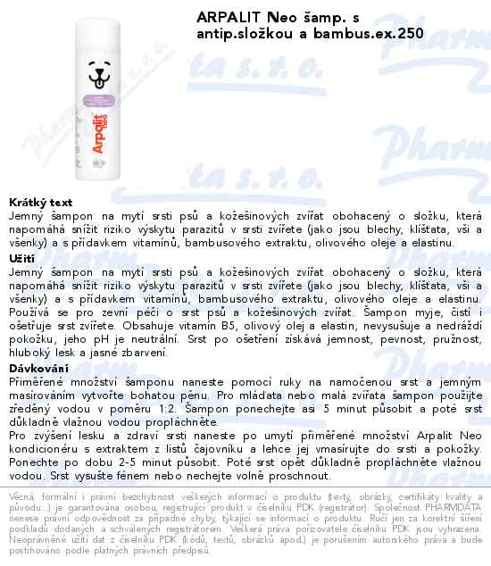 ARPALIT Neo šamp. s antip.složkou a bambus.ex.250