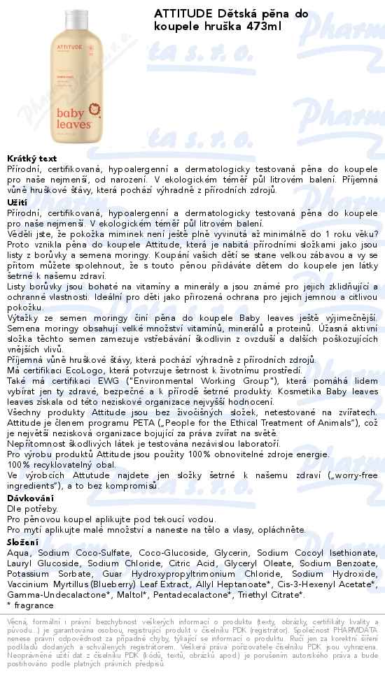 ATTITUDE Dětská pěna do koupele hruška 473ml