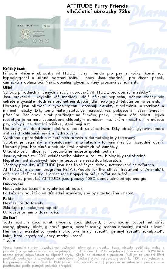 ATTITUDE Furry Friends vlhč.čisticí ubrousky 72ks