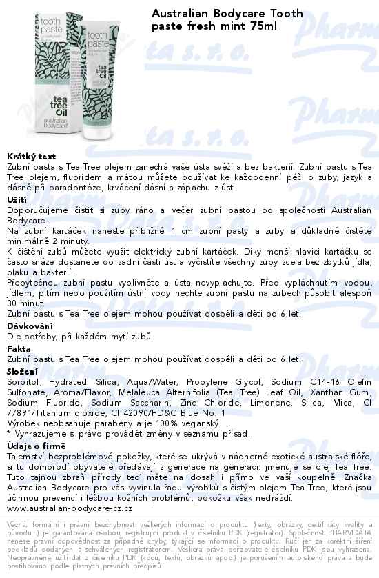 Australian Bodycare Tooth paste fresh mint 75ml