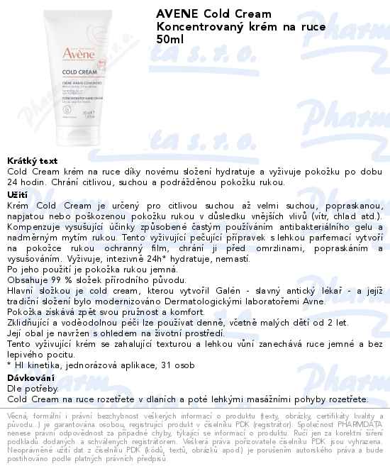 AVENE Cold Cream Koncentrovaný krém na ruce 50ml