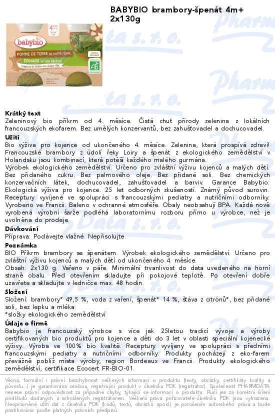 BABYBIO brambory-špenát 4m+ 2x130g