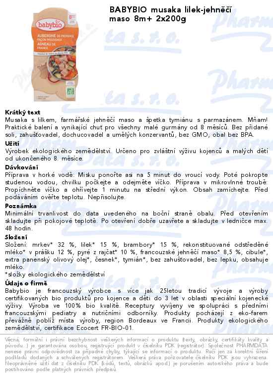 BABYBIO musaka lilek-jehněčí maso 8m+ 2x200g