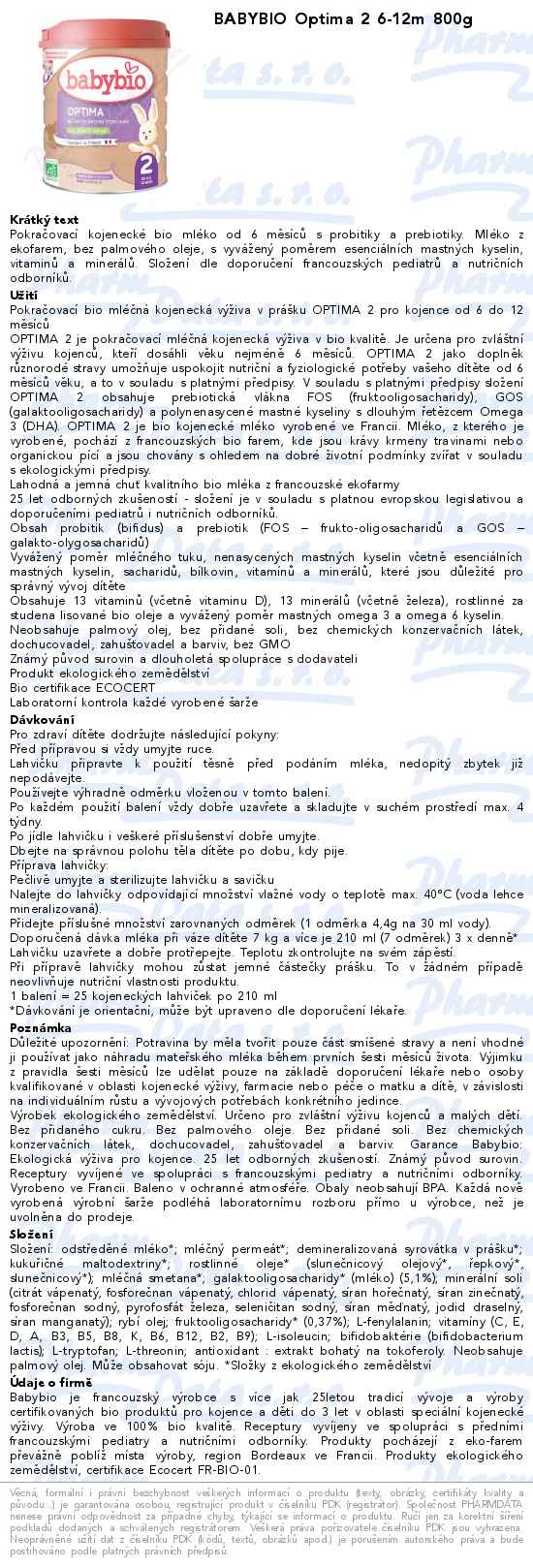 BABYBIO Optima 2 6-12m 800g