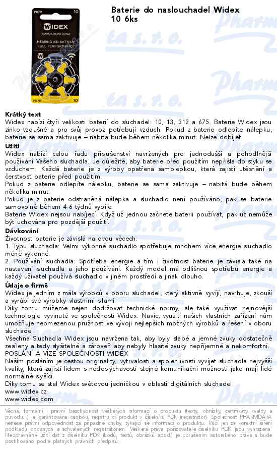 Baterie do naslouchadel Widex 10 6ks