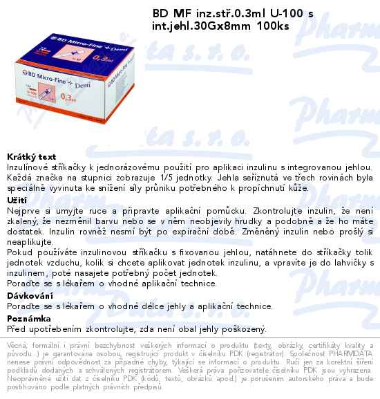 BD MF inz.stř.0.3ml U-100 s int.jehl.30Gx8mm 100ks