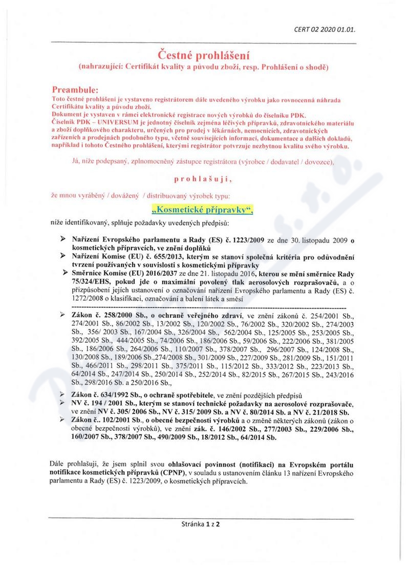 2 strany čestného prohlášení: strana 1, strana 2,
