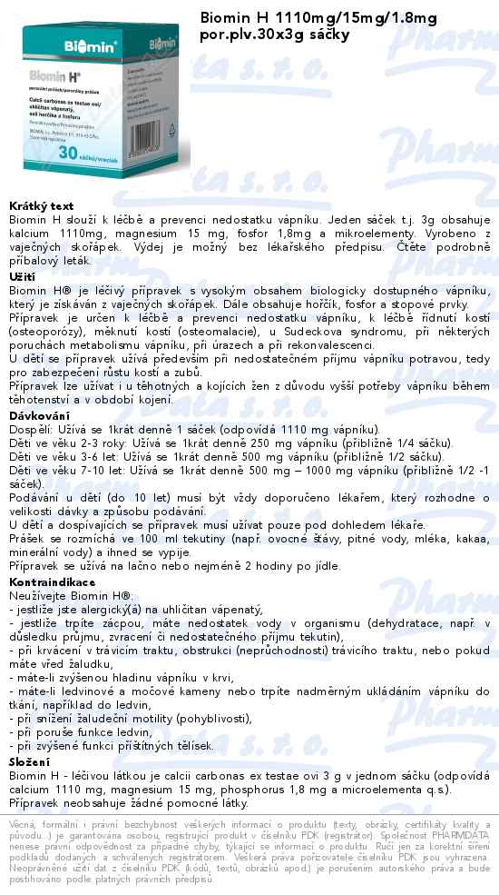 Biomin H 1110mg/15mg/1.8mg por.plv.30x3g sáčky