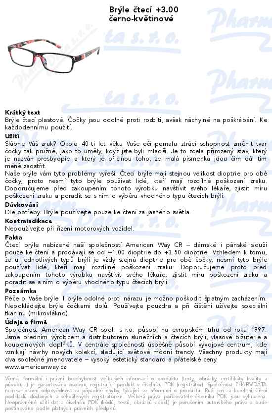 Brýle čtecí +3.00 černo-květinové