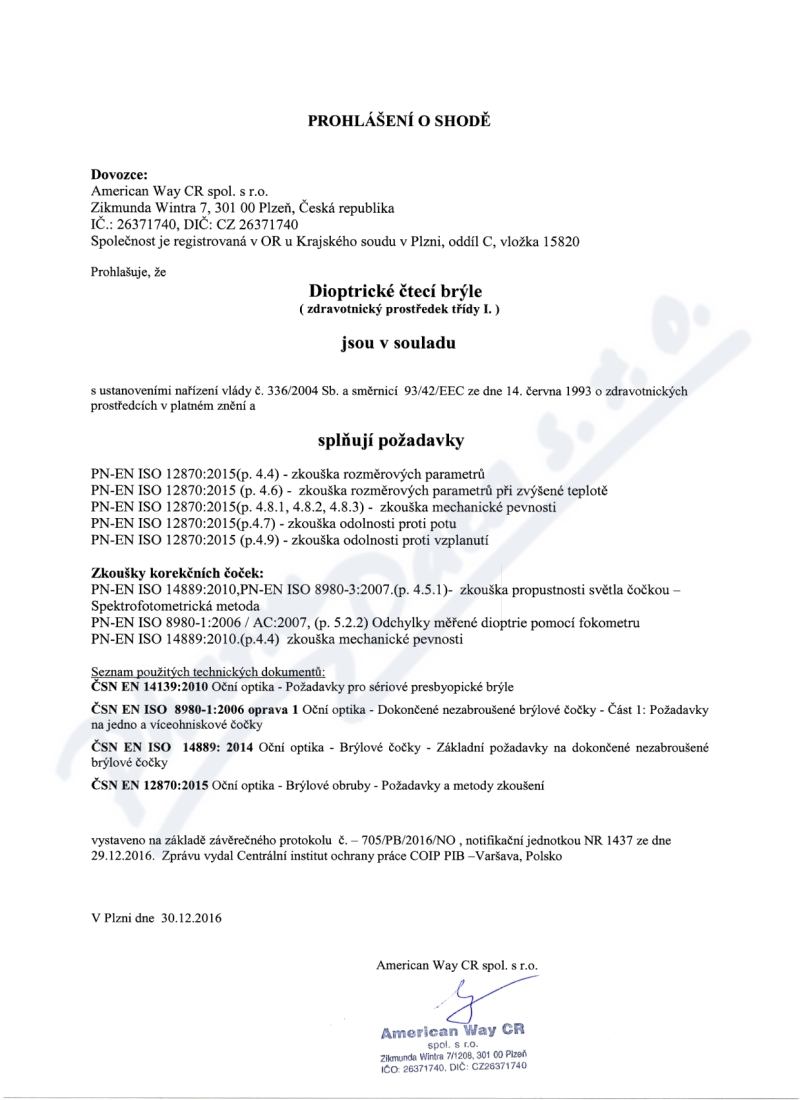 Výrobce: AMERICAN WAY CR spol. s r.o.