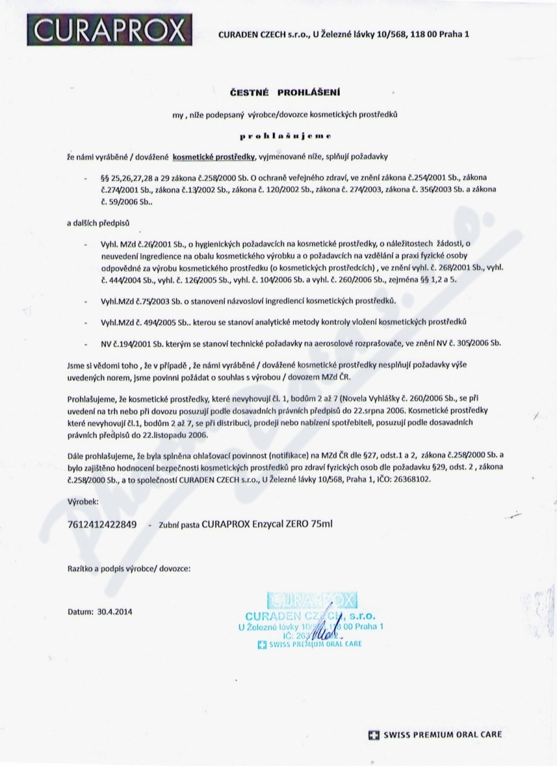 CURAPROX Enzycal ZERO zubní pasta 75ml