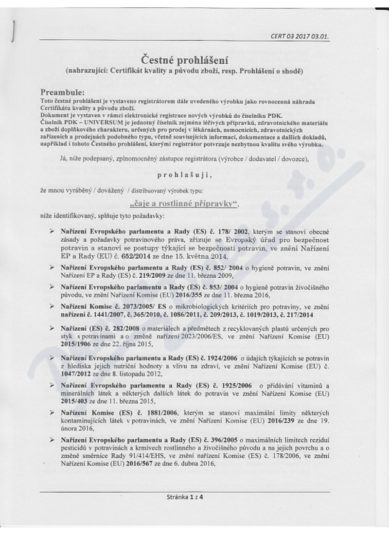 4 strany čestného prohlášení: strana 1, strana 2, strana 3, strana 4,