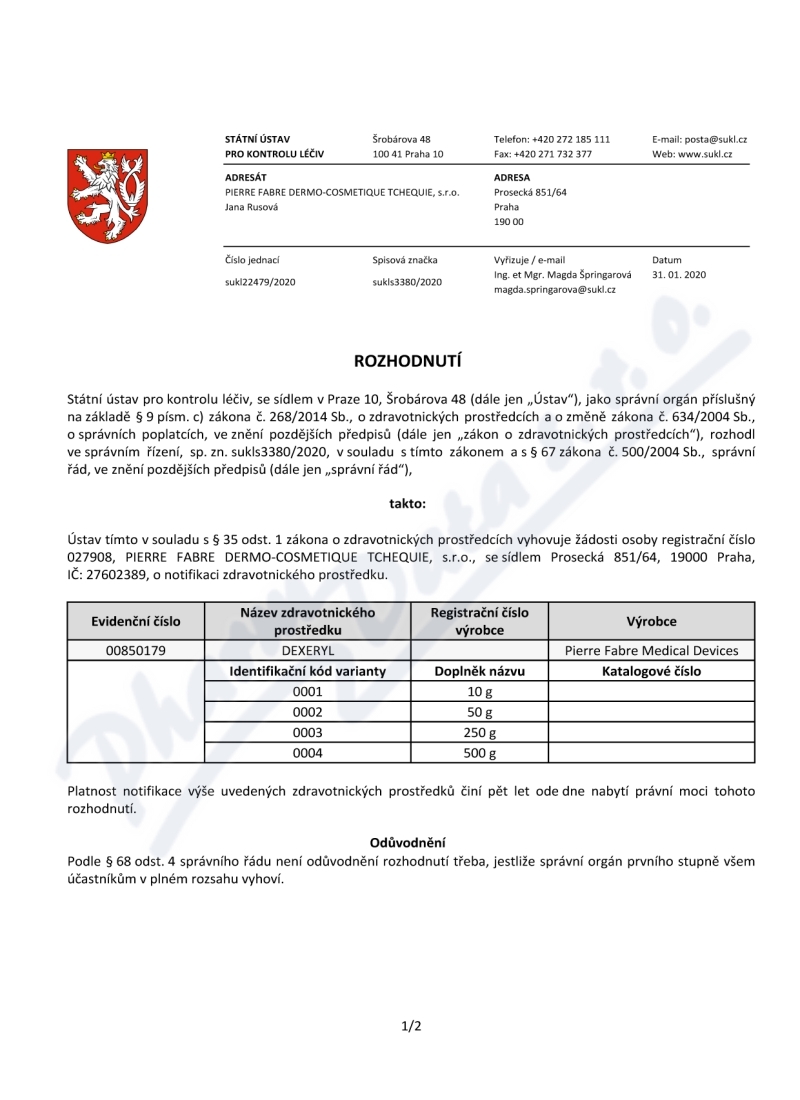 Výrobce: PIERRE FABRE MEDICAMENT, Lavaur, Francie