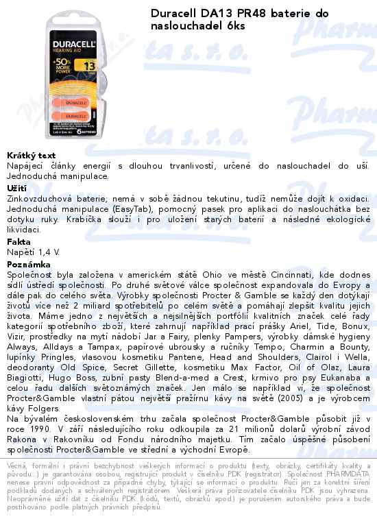 Duracell DA13 baterie do naslouchadel 6ks