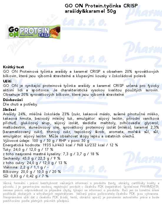 GO ON Protein.tyčinka CRISP arašídy&karamel 50g