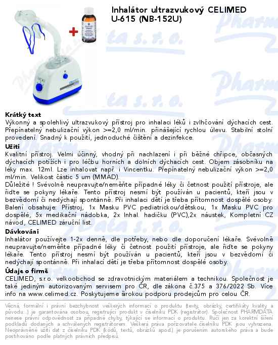 Inhalátor ultrazvukový CELIMED U-615 (NB-152U)