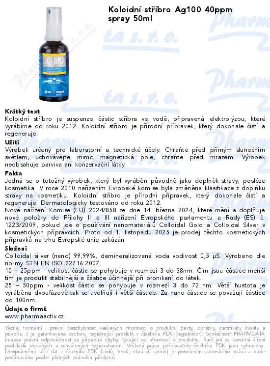 Koloidní stříbro Ag100 40ppm spray 50ml