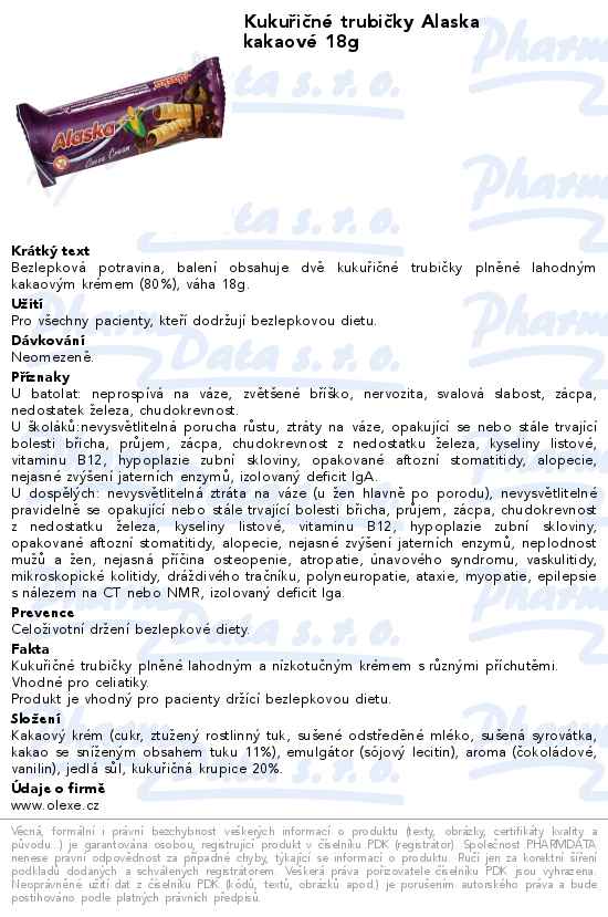 Kukuřičné trubičky Alaska kakaové 18g