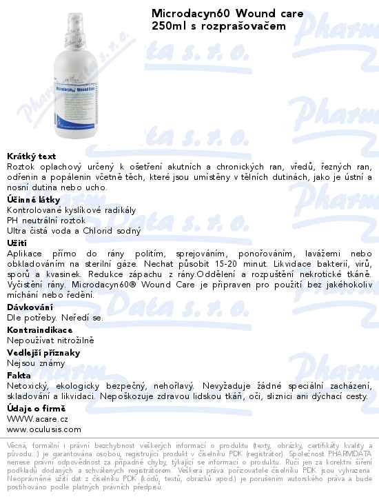 Microdacyn60 Wound care 250ml s rozprašovačem