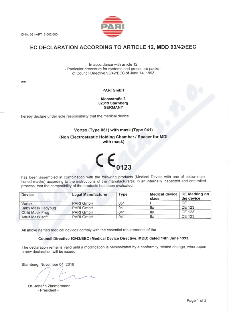 PARI VORTEX chamber s dětskou maskou B(2+)