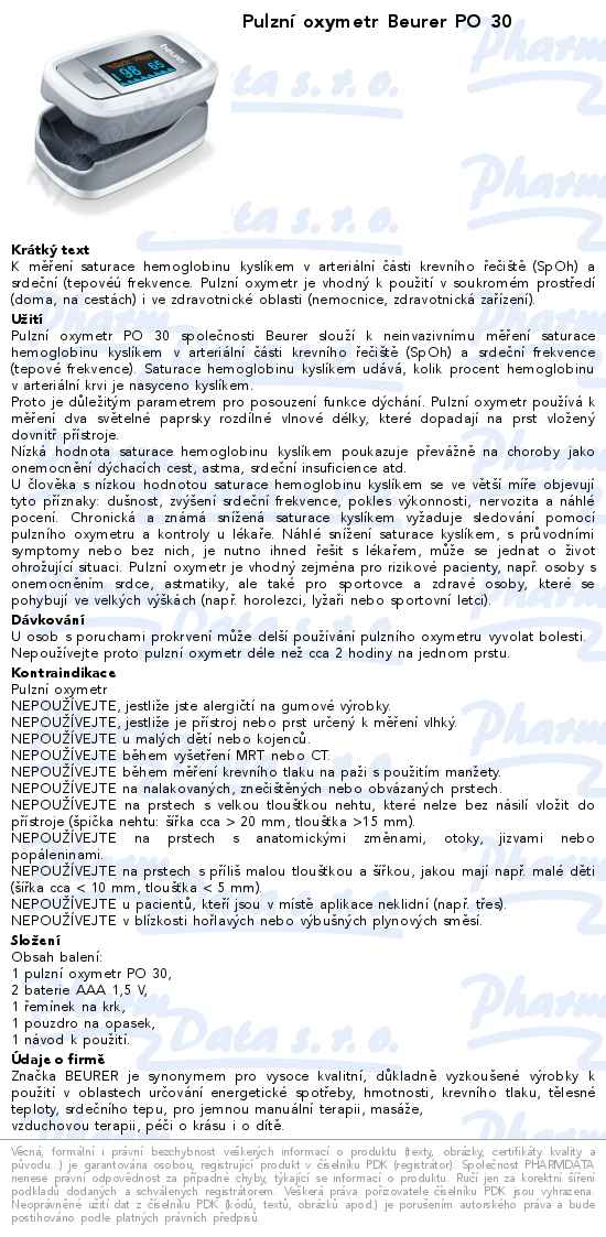 Pulzní oxymetr Beurer PO 30