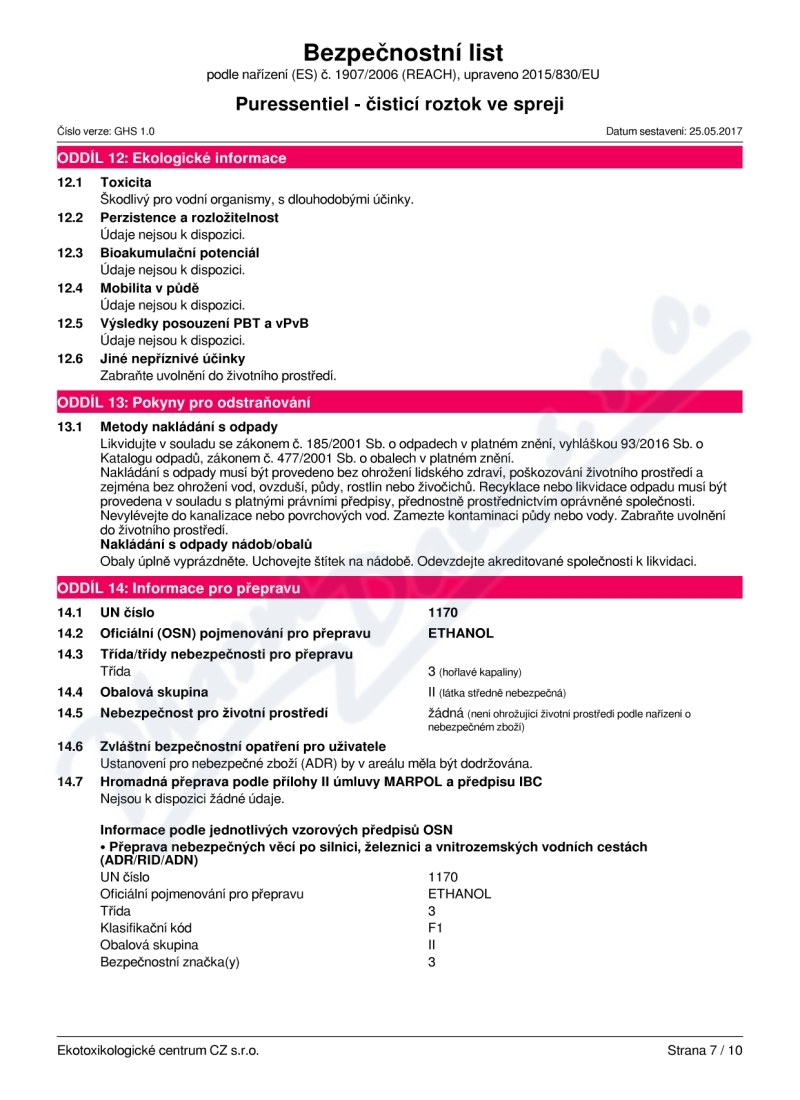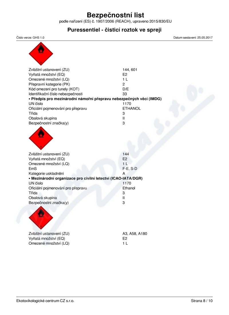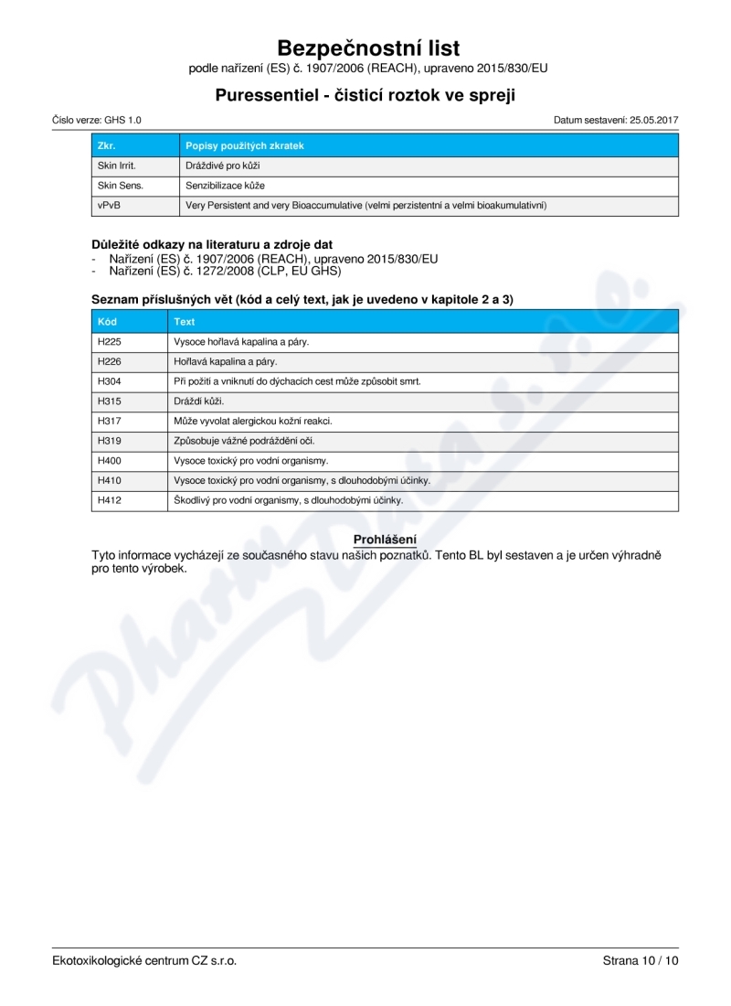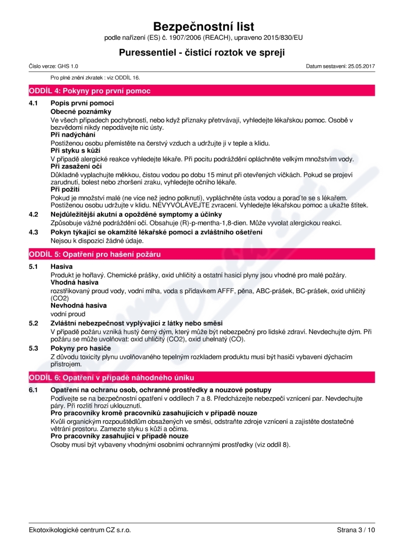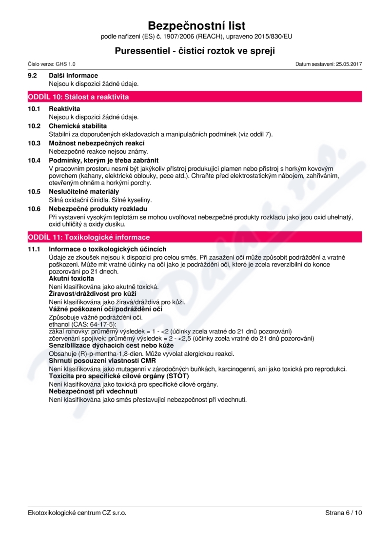 10 strany bezpečnostních listů: strana 1, strana 2, strana 3, strana 4, strana 5, strana 6, strana 7, strana 8, strana 9, strana 10,
