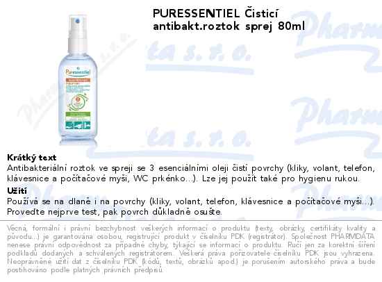 PURESSENTIEL Čisticí antibakt.roztok sprej 80ml