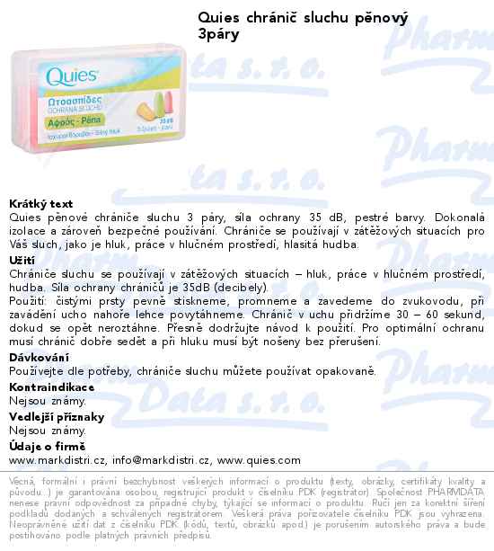 Quies chránič sluchu pěnový 3páry