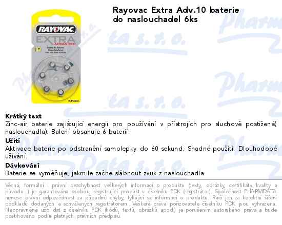 Rayovac Extra Adv.10 baterie do naslouchadel 6ks