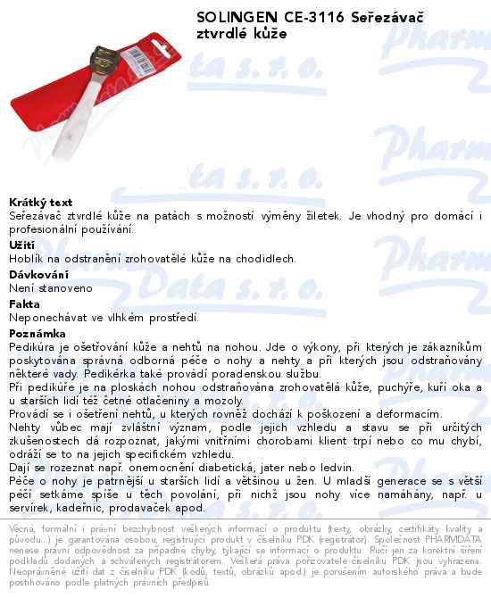 SOLINGEN CE-3116 Seřezávač ztvrdlé kůže
